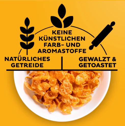 Das intensive Aroma von gerösteten Erdnüssen und ein süßer Honigduft machen die leckeren Mais Cornflakes so unwiderstehlich.